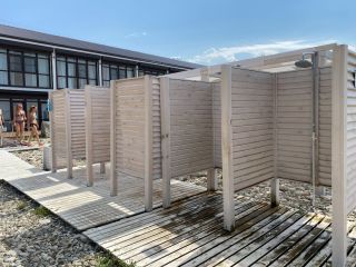 По центру лагеря от центрального входа до пляжных ворот протянулась кипарисовая аллея. Вдоль аллеи стоят лавочки, а также уютные беседки. Территория лагеря ограждена, круглосуточно работает ЧОП, на территории более 300 камер видеонаблюдения.